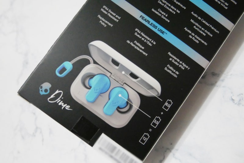 스컬캔디 DIME 무선 이어폰은 IPX4 생활방수 지원으로 여름에 귀 주위에 땀이 고여 운동하거나 비가 와도 방수가 가능하여 편리합니다.
