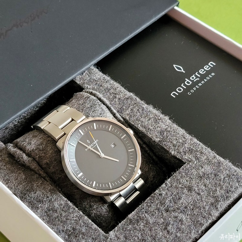 주황색 시계 바늘팁은 작지만 중요한, 오늘보다 나은 내일을 지향하는 노드그린의 행보를 보여줬다고 한다.시계라는 게 시간을 보는 도구고 시간은 오늘에서 내일로 흐르잖아요.작지만 소중한 하루를 즐겁게 보내라는 의미에서 노드그린 남성시계를 선물로 선택했습니다.