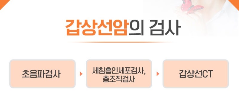 갑상선암의 경우 대부분 뚜렷한 증상이 없어 주로 건강검진으로 초음파 검사를 하고 결절(종양)을 발견한 후 세침흡입세포 검사를 거쳐 진단하는 경우가 많습니다.