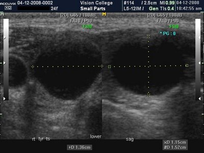 다만 갑상선 양성낭종의 크기가 커지거나 혹으로 인해 갑상선 조직 일부가 압박되어 통증, 호흡곤란, 연하장애 등이 있는 경우에는 수술적인 방법을 제거받는 방법도 고려해야 합니다. 통상 갑상선 양성 낭종의 크기는 1~3cm 정도이며,
