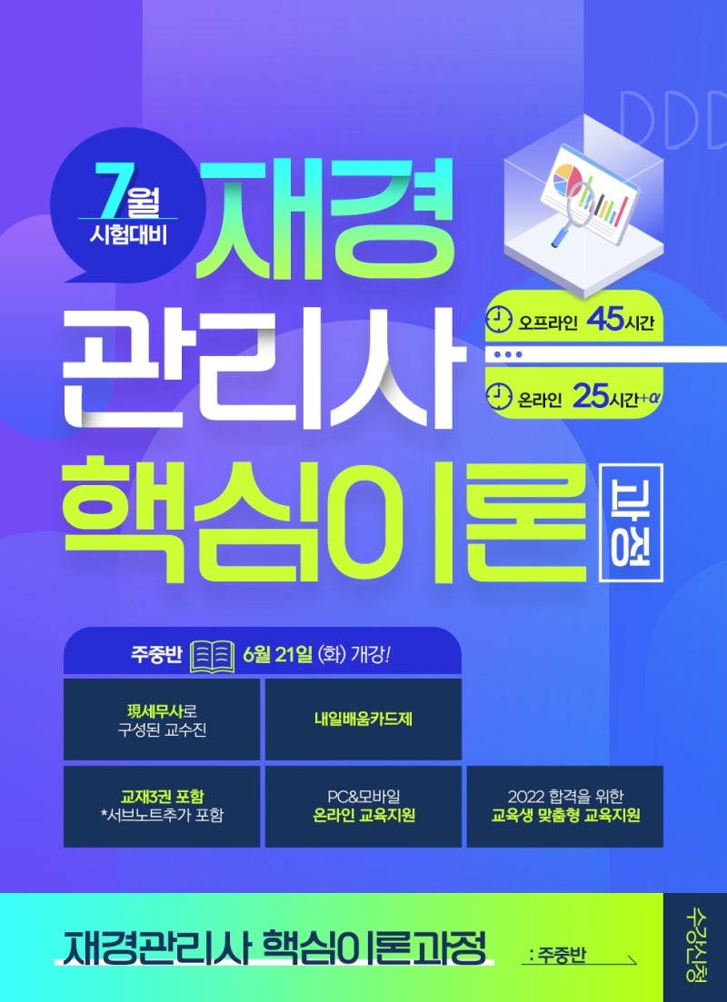 i격증명: 전산회계 1급 구분: 민간자격증 응시료: 접수수수료(25,000원)/ 자격증 발급비(5,000원) 시행기관: 한국세무사회(https://license.kacpta.or.kr)/ 연락처: 02-521-8398 강남회계자격증학원에서는 선호도가 낮은 전산회계 2급 과정 대신 기업이 필요로 하며 취업이나 업무에 꼭 필요로 하는 기초회계이론과 전산회계 1급 수업을 준비하여 시험에 대비할 수 있는 과정이 있습니다.직장인, 학교 다니는 학생들도 모두 수강하는데 어려움이 없도록 평일 저녁 격일 수업 or 주말 수업으로 수업을 진행하고 있습니다. :)강남회계세무자격증 학원 수강생 후기 만족도![추가 이벤트] 수험생 모여라!강남회계세무자격증 학원에서는 수험생을 위한 이벤트를 준비했습니다!2023 수능을 치른 수험생이라면 성별, 나이 상관없이 무조건 받을 수 있는 혜택!아래 배너에서 지원을 받아보세요.:) 수험생 이벤트는 배너를 통해 접수만 가능하오니 참고 부탁드립니다. ♡강남회계세무자격증학원은 자격증 패키지반이 운영되고 있으며, 시험 응시에 부담을 느끼고 있는 수험생들의 부담을 조금이나마 덜어주기 위한 자격증반 패키지는 1. 출석률 90% 달성 시 합격 시까지 재수강이 가능합니다.2. 자격증 취득만으로도 회계, 세무파트로 취업할 수 있도록 취업상담을 지원합니다.3. 친구와 함께 등록하면 복습용 온라인 강의에 지원합니다.물론! 이 혜택을 등록하는 모든 것을 받을 수는 없잖아요!강남회계세무자격증 학원의 파격적인 혜택을 적용하고자 하는 분이 있을 경우 선착순 모집을 마감하오니 자세한 상담은 포토카드를 클릭하여 확인하시기 바랍니다.:)기초회계+전산회계 1급 경리실무자 입문과정으로 전산회계 1급 과정은 가장 기본적이고 실질적인 회계원리, 원가회계, 부가가치세 등을 학습하는 과정이다.