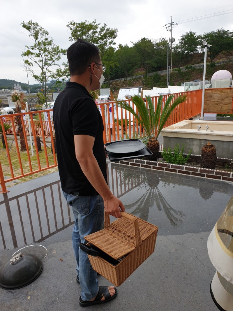 3시 이외 시간에 맞춰서 오늘의 방문객들이 몰렸습니다. 저의 가족처럼 멀리까지 온 손님도 있고, 창원, 대구, 부산 근교 등 곳 곳에서 찾아 주셨군요. 조금만 기다리면 친절한 안내원의 안내를 받을 수 있습니다. (난방, 온수 스파, 나무 장작은 추가 선택할)체크인을 하면 소풍 바구니도 하나 나누어 줍니다. 뭐가 들어 있는지 궁금했는데 열어 보지는 못했다는 ww객실 이용 금액:200,000원(성수기 가격은 변하는 것 같아요.)