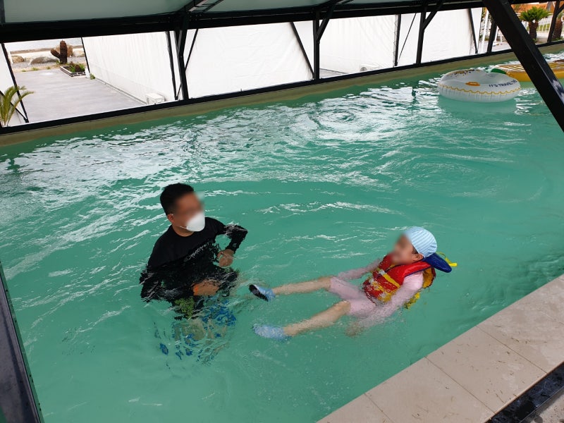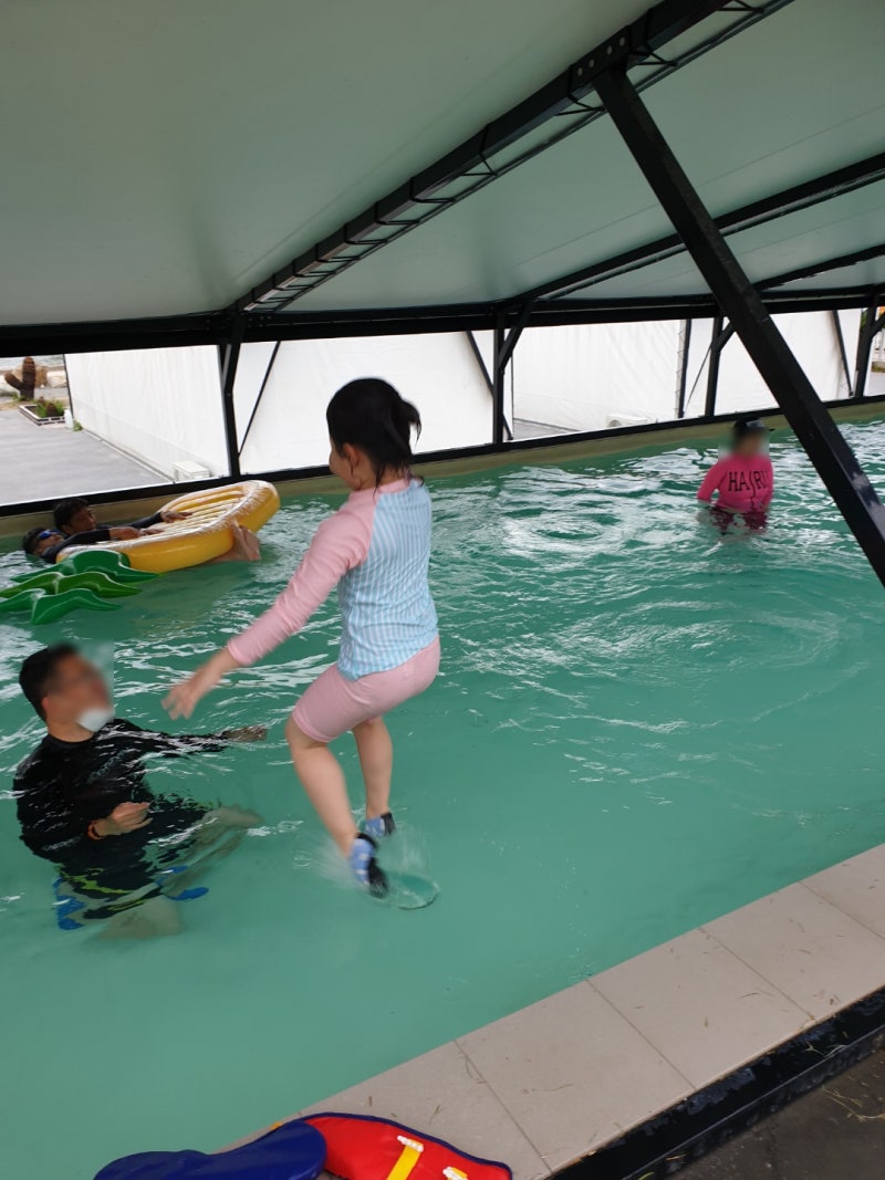 경상남도 바닷가 바로 앞 사천 글램핑장에서 가족여행을 (feat. 온수수영장)