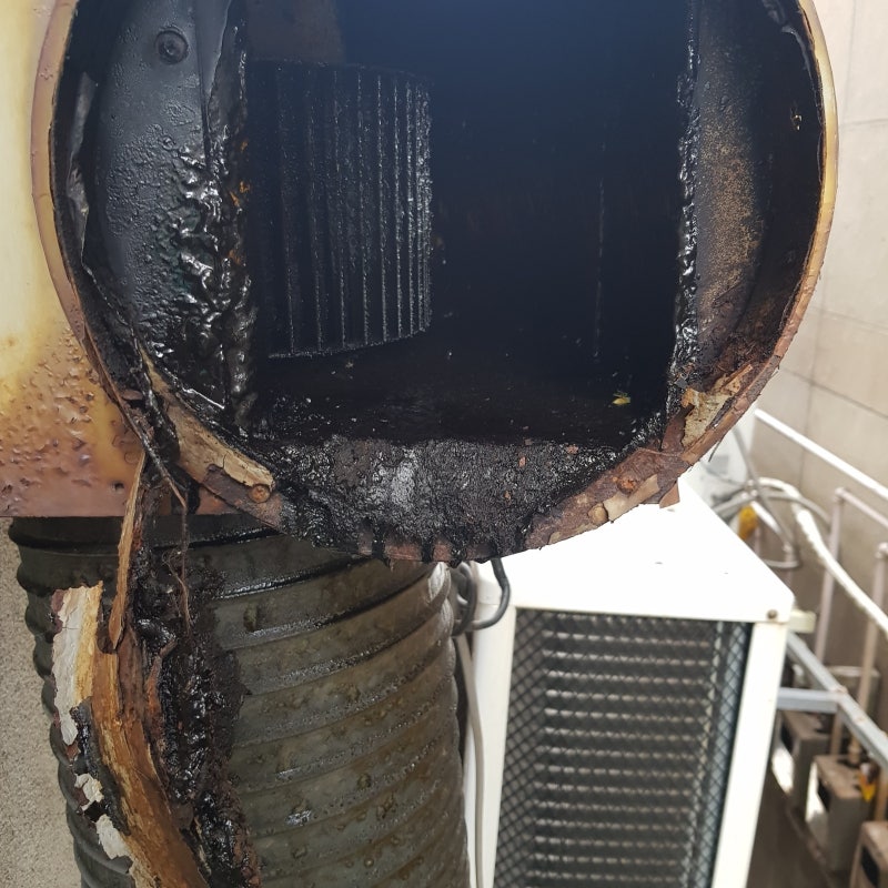 블로워 자체가 많이 녹슬고 부식이 많이 진행되는 상황이라 교체가 필요한 상황이라 교체를 권장했지만 작동상 전혀 문제가 없어 외관상 오염된 덕트호스, 자바라만 교체하기로 했습니다.그럼 핸디맨 임반장의 작업과정을 한번 살펴보겠습니다!!광주광역시 북구 운암동 상가 기름에 오염되어 오일로 가득 찬 자바라(플렉시블 호스) 교체 과정 및 방법, 고객님의 요청에 따라 플렉시블 호스와 레인지만 교체하도록 하겠습니다.블로워에서 천장 배관에 연결된 후 레인지를 먼저 분리합니다.~ 하지만 녹이 슬어서 쉽게 분리할 수도 없어요.분리하다가 파손되겠네요~두둥! 자바라 먼저 제거 완료! 플렉시블 호스만 제거했는데… 프렌치가 깨지네요.생각보다 블로워 내부에 오일이 떡이 되어 내부 모든 것을 덮고 있습니다. 청소업체를 통한 청소 또는 자바라 교체가 시급할 것 같네요~눈에 띄는 이상 청소할 수 있는 부분은 오일 덩어리를 제거합니다.블로워 팬의 내부를 청소하기플렉시블 호스와 레인지를 교체 완료한 상태입니다.~교환 완료! 반도를 이용하여 단단히 체결합니다.~야외에 설치되어 있는 것보다는 강한 바람에도 날지 않도록 합니다.이제 후드와 블로워 팬이 연결된 자바라를 교체해야 합니다.자바라 외부에 기름이 스며들었네요~얼마나 많은 오일이 있을까요~ 더운 여름이면 화재 위험성도 있겠네요.눈물내부 사진을 한번 볼까요?역시 예상대로 플렉시블 호스 내부가 전체적으로 오일로 굳어져 있습니다.더운 여름엔 녹아서 그냥 후드밑으로 떨어지겠죠~ㅜㅜㅜㅜㅜ보이나요? 자바라와 블로워 팬에서 오랜 세월 동안 기름이 떨어져 굳어 있습니다.무더운 여름이 되면 뜨거운 태양빛과 복사열로 인해 고체의 기름이 액체로 변하면서 후드 아래로 주르르 흘러내릴 것 같기도 합니다.눈에 보이는 기름도 제거하는 데 상당한 시간이 걸립니다.옥외 전용 내열용 실리콘으로 마감 처리합니다.~사실 고객님께서는 상단 덕트 자바라만 교체해 주셨으면 했는데 오랜 기름으로 얼룩이 심한 하단 자바라도 모두 교체 완료했습니다.게다가 후드와 블로워에 쌓인 기름덩어리도 제거했는데 조만간 블로워도 교체해야 할 것 같네요~(웃음)자바라 교환 완료된 사진입니다.기름 덩어리로 쌓여 있는 오래된 덕트 호스를 분리하여 새로운 자바라로 교체 완료했습니다!지상에서 3~4m 작업환경이 위험하고 까다로웠지만 이상없이 택트 배관을 깨끗하게 교체 완료했습니다.작업 사진 전후작업 중 기름 덩어리까지 제거하는 데 꽤 시간이 걸리는 작업이었습니다만, 화재의 위험성이 있는 기름 덩어리를 제거하지 않으면···. 마음이 무척 불편하다고 생각했다. 당연히 해야 합니다~작업 완료 후 화재 예방 때문에 고객에게 최대한 빨리 2개를 요청했습니다.1. 시로코 팬(송풍기)교환 2. 음식, 덕트 내부 청소 화재의 위험이 있으니 내가 작업하면서 느낀 점을 말씀 드리고 손님도 흔쾌히 받아들이고, 작업 결과에 만족했습니다.유연 호스의 경우는 폴리에스테르 포함 pvc난연 코팅으로 영하 20도에서 70도까지 사용 가능하므로 야외에서도 사용 가능한 안전한 자바라 호스죠. ^^광주 전 지역 수리 가능이라, 언제든지 연락 주세요. ^^
