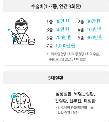 이러한 구조일 수밖에 없는 이유는 각 보장항목마다 보상받는 질병코드가 다르기 때문입니다.