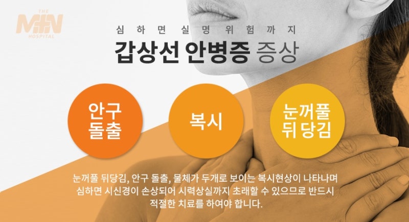 박과 같은 리듬으로 머리에서 소리가 들리는 경우, 눈이 통통하게 붓거나 사물이 이중으로 보이는 경우, 렌즈를 꼈을 때 지나치게 눈에 띄는 경우, 깜박임 횟수가 적고, 제대로 눈을 감지 못하는 경우, 눈이 쉽게 마르고 인공눈물을 사용하는 경우 등에도 눈의 돌출을 의심할 수 있습니다.