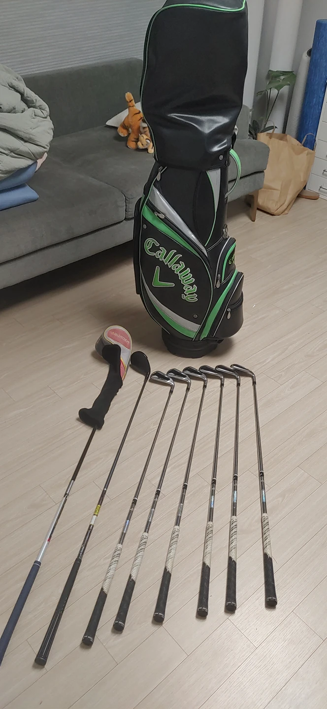 그냥 헤드가 깨끗한 건지, 흠집이 많지 않은 건지, 그립이 탄탄하지 않은 건지, 헐렁하지 않은 건지- 그냥 새것 같은 느낌이면 돼. 그래서 제가 자주 사용하는 7번 아이언과 샌드를 꺼내보시면 괜찮을 것 같아요~ 하니까 더 꼼꼼히 보셔도 돼요. 했어요. 시작한지 얼마 안되서 봐도 잘 모르겠어요. 새것 같은데요.판매자님 왈, 그라파이터를 샀는데, 저는 힘이 맞지 않아서 잘 사용할 수 없었습니다. 스틸로 새로 샀거든요 아무튼 그렇게 현장에서 카톡 계좌이체를 하고 입금 확인을 마쳤다. 잘 사용하세요~ 한번도 안 써본 새 골프백. 진짜 새거였어. 비닐도 뜯지 않고 모양을 잡기 위한 박스도 그대로 들어 있었다.