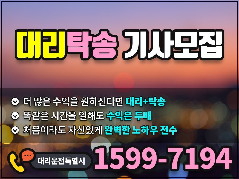 음주운전 단속과 처벌 수준이 더욱 강화되고 소량의 술이라도 운전을 하는 것은 범죄라는 개념을 갖게 되는 사람들이 늘고 음주 후에는 대리운전을 호출해 귀가하는 사례도 상당수여서 그만큼 대리운전기사 수요도 매번 늘고 있어 전망도 밝습니다. 제 몸이 건강하고 체력이 좋은 경우라면 제가 근무한 만큼 수입이 나올 수 있는데다 심야시간까지 편하게 근무할 수 있어 상당수 분들이 관심을 갖고 있습니다. 또 노력에 비해서 소득이 우수한 추세이기 때문에 자투리 시간대를 쓰기에는 정말 최상의 부업이라고 할 수 있습니다.