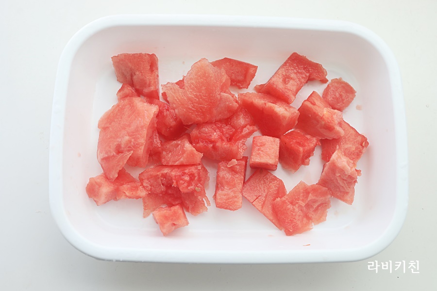 그래서 수박 씨는 빼고 수박 과육을 가지고 만들어 주기로 했어요.가끔 수박씨가 보였거든요.