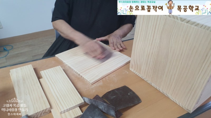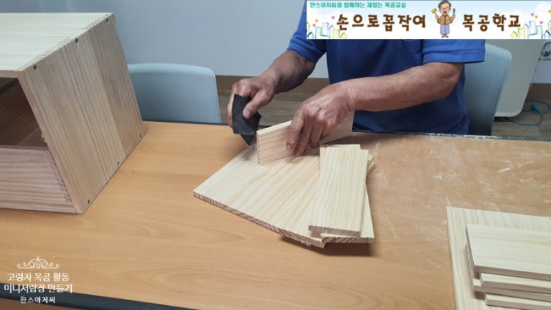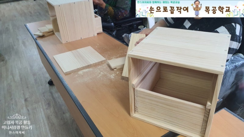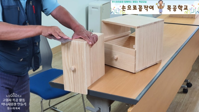 목공교육전문가 한수삼촌찾아가는 목공학교 한솔종합사회복지관 고령장애인목공수업 미니서랍 만들기 2한수삼촌
