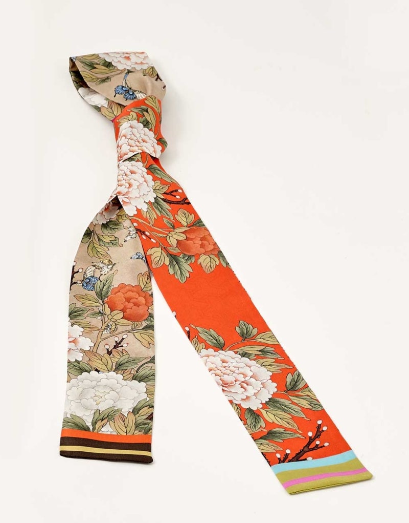 트위리스 커프의 경우 매듭 방식에 따라 다양하게 다양한 느낌으로 연출할 수 있다는 장점, 어떤 매듭으로 묶느냐에 따라 주는 느낌도 다르고 어떻게 포인트를 주느냐에 따라 그 느낌이 다르다.가방에 장식해 포인트 디테일로 사용하기 좋은 가방에 트윌리스 커프를 포인트로 삼아 자주 사용하기도 한다. 트위리스커프 ‘부귀영화’ 실크 100% 인쇄가 고급스러운 트위리스커프 ‘부귀영화’ 상품 중량 : 36g 상품 크기 : (폭) 7cm x (길이) 150cm 상품 소재 : 실크 100%