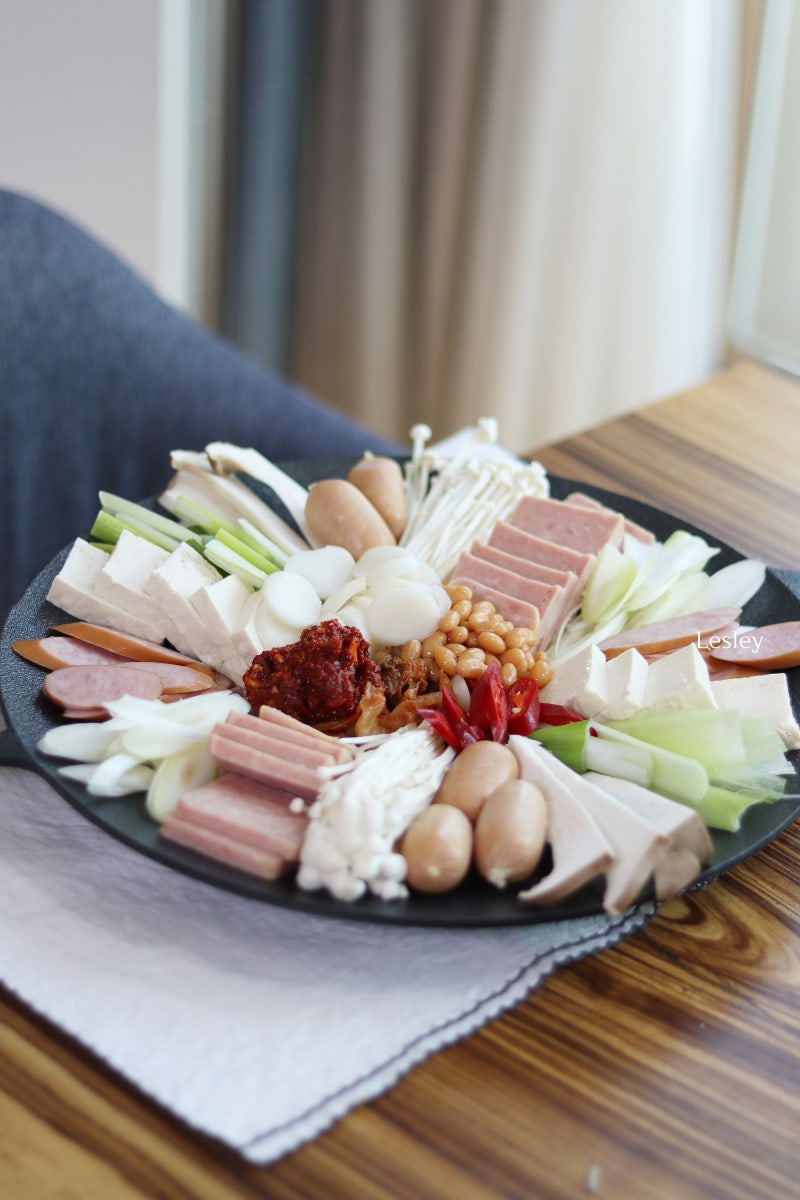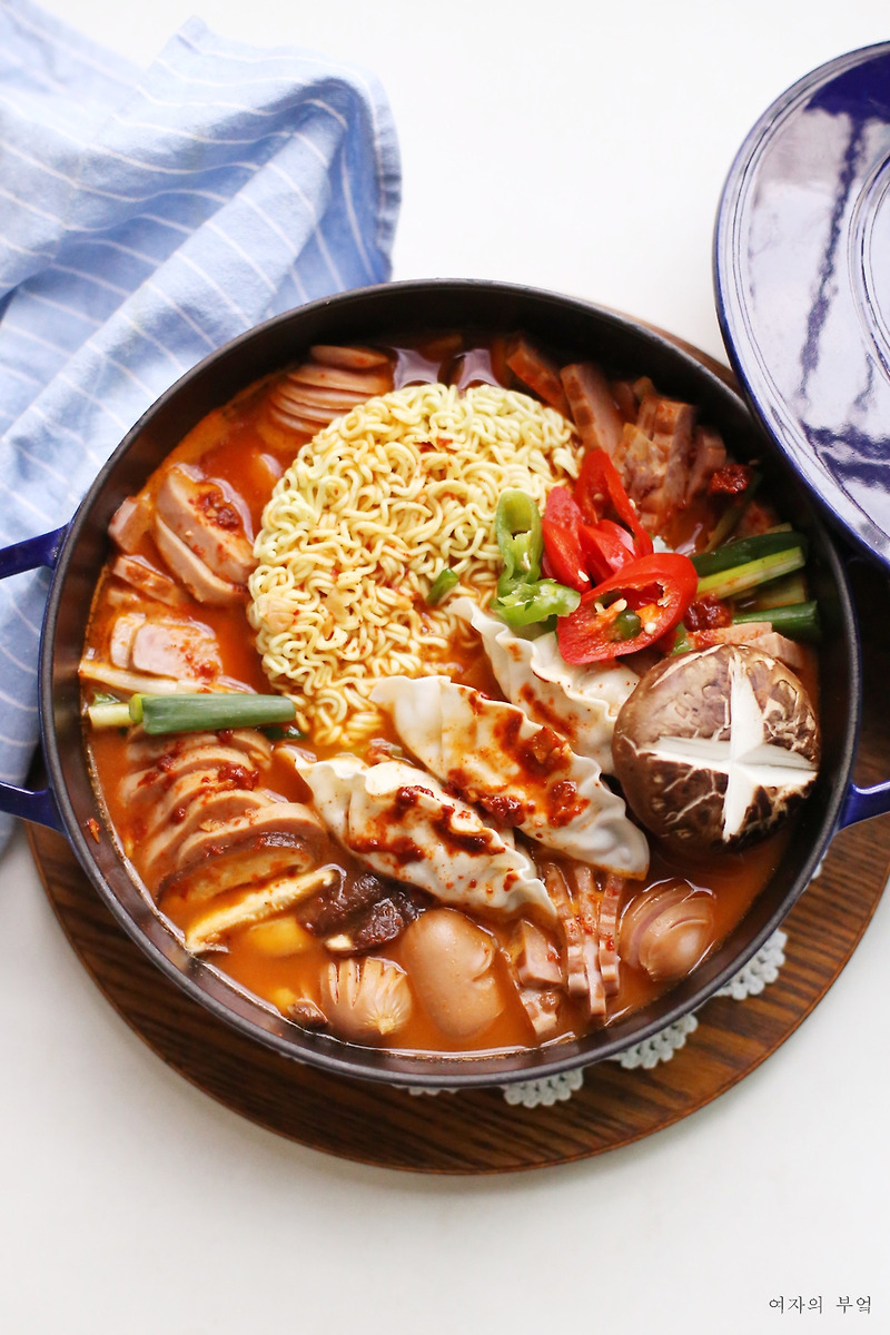 주말에는 주로 어떤 음식을 만들어 먹나요? 가족 모두가 좋아하는 메뉴를 선장하기가 가장 어렵죠?부대찌개 황금레시피 부대찌개 양념만드는법 햄찌게재료 돼지고기 또는 소고기400g, 양파1/2개, 김치조금, 대파1개, 국물가득옵션떡, 치즈, 통조림콩, 두부, 버섯, 치즈기타등 부대찌개 양념고추장2, 고춧가루3, 간장3, 설탕2, 다진마늘1 밥숟가락 기준계량