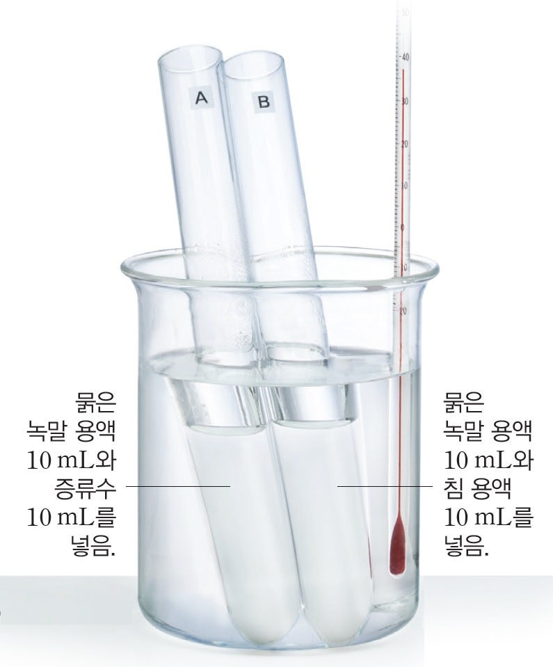 20분 정도 지나서 시험관에 넣고 반응을 보려고 합니다.포도당과 전분 용액이 들어 있던 비커 안의 물을 시험관에 넣었습니다.전분 봉지가 있던 비커 안의 물은 아이오닉화 칼륨 용액을 떨어뜨려 색의 변화를 봅니다.~~오, 전분은 셀로판 막을 빠져나가지 않았네요.덩어리가 커서 반투과성 막인 셀로판 막을 통과하지 못했습니다.>포도당 용액은 반투과성 막인 셀로판 막을 통과하여 빠져나갔습니다.베네딕트 용액을 넣고 가열했더니 황적색으로 변했네요.>포도당 용액은 반투과성 막인 셀로판 막을 통과하여 빠져나갔습니다.베네딕트 용액을 넣고 가열했더니 황적색으로 변했네요.>포도당은 알갱이가 작아서 셀로팍막을 통과하고 전분은 알갱이가 커서 셀로판막을 통과하지 못하죠.큰 덩어리의 음식은 이렇게 작은 최종 분해물로 소화가 안 되면 세포막을 통과해서 세포 안으로 들어가야 제 기능을 하잖아요.>