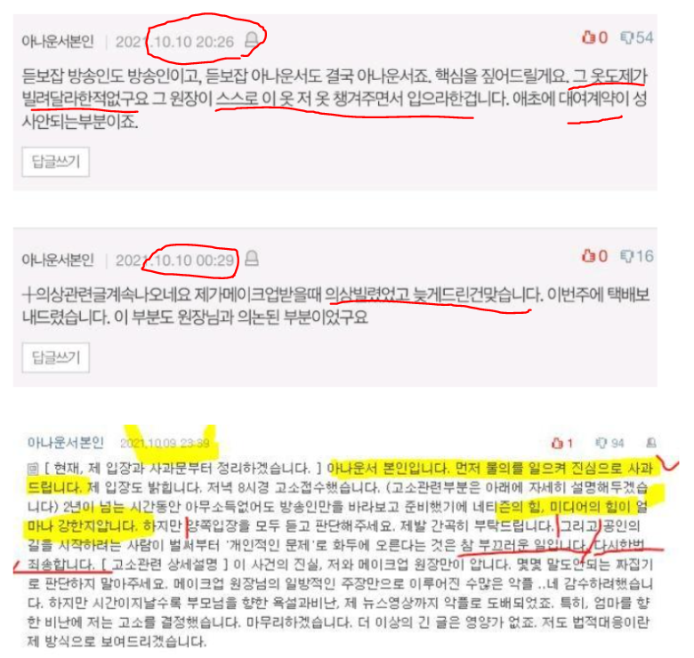 저자 A씨는 이런 더러운 경우를 겪는 메이크업 아티스트들이 더 이상 생기지 않았으면 하는 마음에 해당 글을 작성했다고 합니다. 신동아TV 아나운서와 메이크업 아티스트가 주고받은 메일도 공개됐습니다.