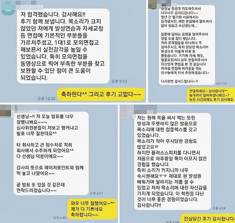다른 아나운서 스피치 학원이라는 곳의 비포 애프터와는 질적으로 다른 소리가 들린다고 생각합니다.