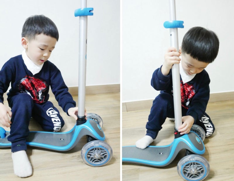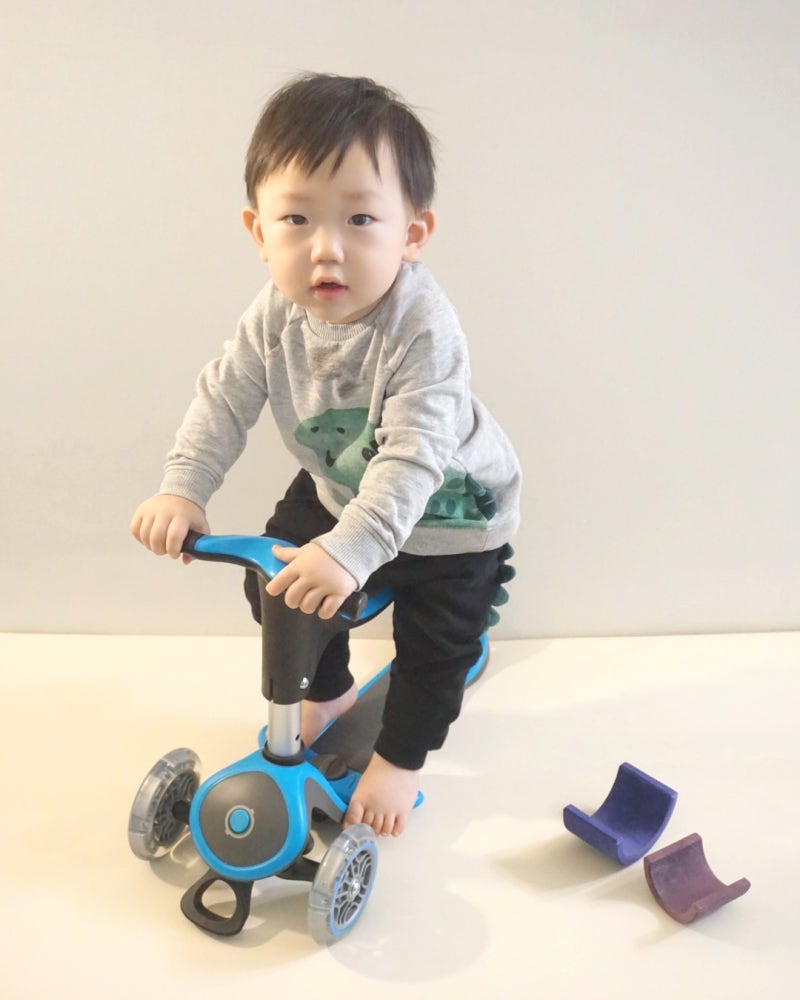 오토바이, 사실 처음에는 유모차인 줄 아는지… 탈 생각은 안 하고 운전대를 잡고 이리저리 밀기만 하다 보니 강제로 앉히고 속도를 내면 그게 꽤 재미있었는지 그 뒤로 나를 그렇게 귀찮게 한다. ㅎㅎ 사실 킥보드를 사면서 벌써 16개월 된 놈이 본전을 찾아주는 줄 알았는데 글로버 고업은 4in1로 아이 성장에 맞춰 4가지 주행 방법으로 탈 수 있어 빨리 사는 게 이득이라고 생각해 일찌감치 구입했다.