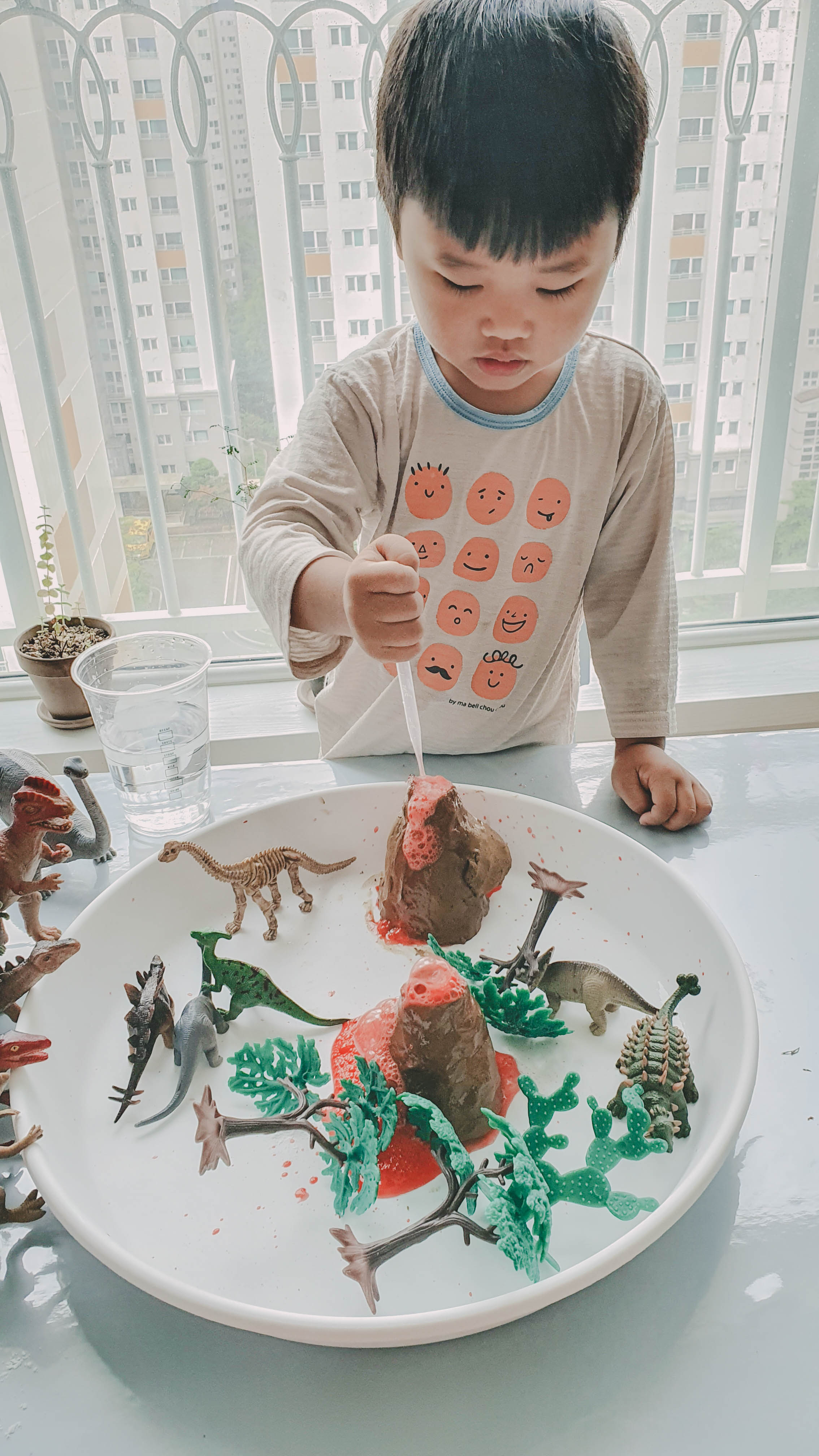 아이가 물놀이를 하는 동안 얼른 치우며 오늘의 화산 폭발 실험 마무리.집에 있는 재료로 충분히 실험이 가능하고 실험 효과도 금방 나타나는 아이와 하기 좋은 과학 실험 놀이 같다.