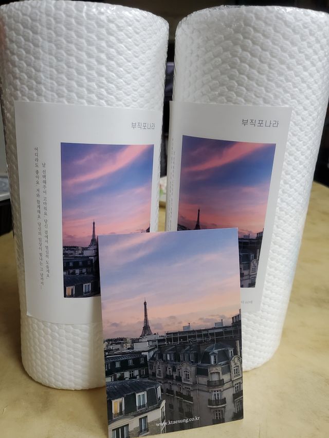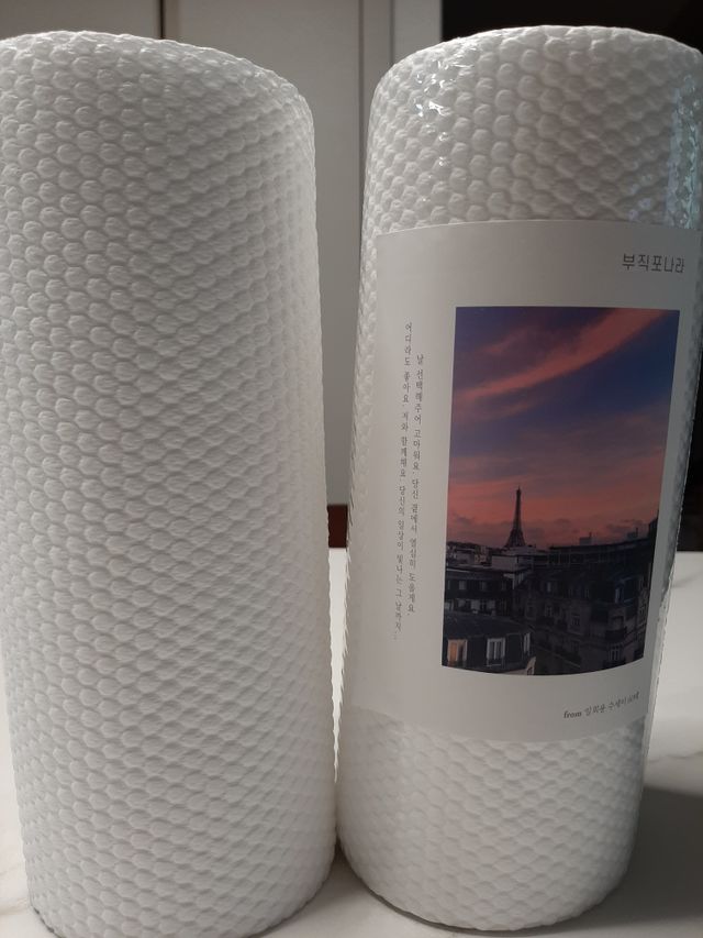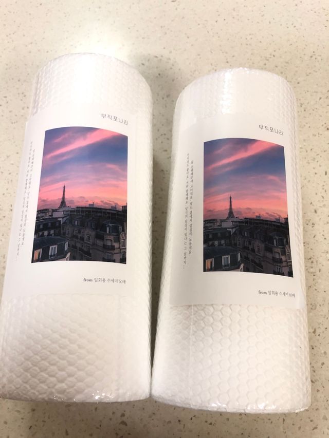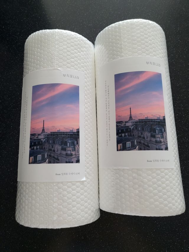 부직포 나라의 일회용 수세미입니다.키친타올 닮았어요.감성있는 그림도 예쁘네요.키친타올인줄 알았는데 수세미에요.