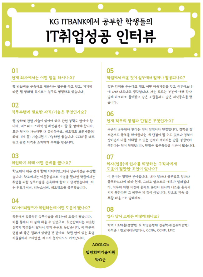 코리아 IT 아카데미를 원해? 너도 코딩마스터! 고용노동부 지정 직업능력개발훈련 우수훈련기관 선정! 2022년 직업능력심사평가원 주관 2022년도 훈련이수자 평가 최우수 A등급 획득! 코리아IT아카데미 취업률 100% 도전! 취업은 KOREA IT! 취업률 100% 달성의 길을 함께 하겠습니까? AI·디지털 인재 100만명 양성 IT업계에서 가장 핫한 이슈를 한눈에 모으자 교육의 시작! 강사취업사관학교 철저하고 견고한 우수 IT강사 육성과정 수강료 조회 국비과정 조회 나에게 맞는 교육과정 찾기 온라인결제 Customer Center 02-5…bit.ly