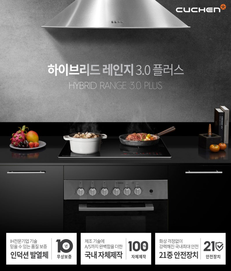 쿠첸은 국내 최초로 하이브리드 전기레인지를 출시한 기업으로 그것만으로도 전기레인지를 추천할 수 있는 명분이 충분합니다.나는 요즘 국내 제작 제품이 가장 신뢰할 수 있고 신뢰할 수 있습니다.쿠첸 하이브리드 레인지 3.0 플러스는 100% 국내 자체 제작으로 기술력은 물론 A/S까지 완벽하게 받을 수 있어 안심입니다.