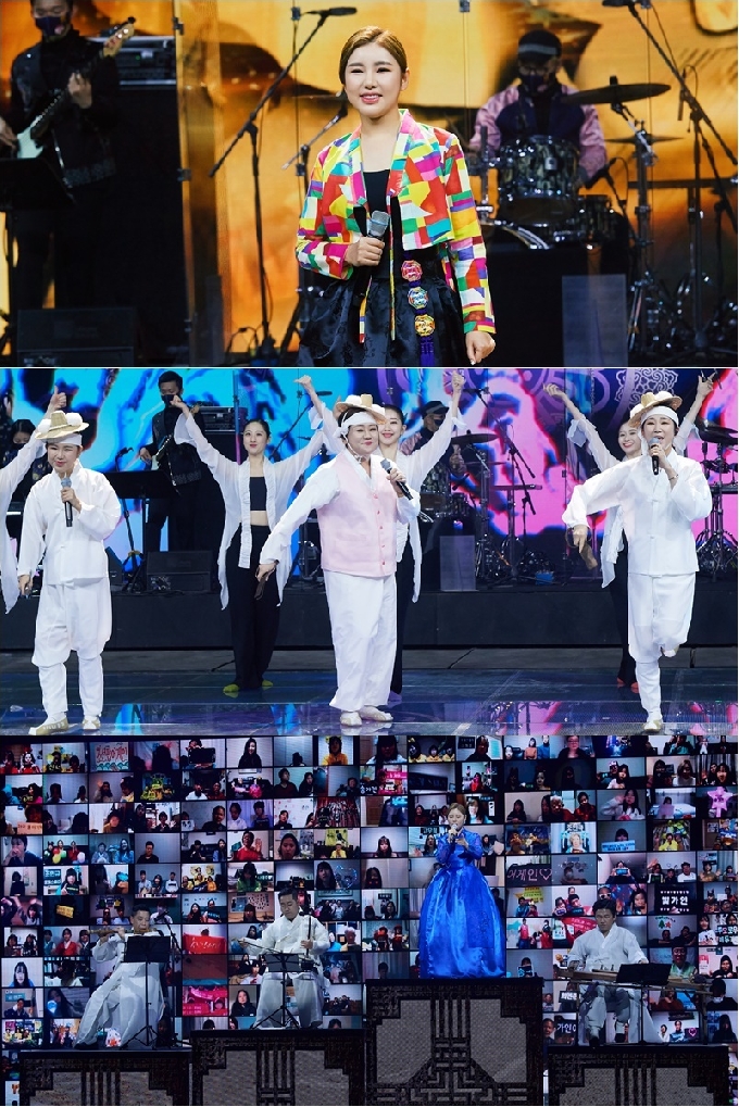 이에 공개된 스틸 속에는 강렬한 카리스마로 무대를 장악한 세 사람의 모습이 담겨 시선을 강탈했습니다. 이들은 사탕장수로 변신한 남장의 모습부터 눈길을 끄는 화려함이 넘치는 한복까지 다채로운 모습으로 무대를 채우고 있습니다. 가슴팍을 들고 텐션을 폭발시키는 모습은 보는 이들까지 어깨를 떨게 했습니다. 특히 세 사람은 ‘세타령’에서 환상적인 호흡을 자랑하듯 흥을 최고조로 이끌며 몰입도 높은 무대를 완성했습니다.