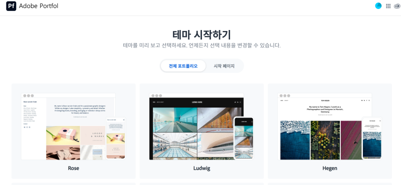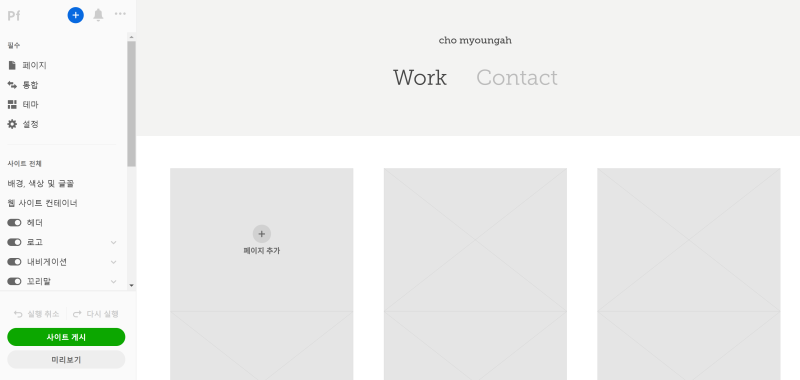 시작 페이지에는 여러 항목이 있고 템플릿이 있는데 wIX 느낌이네요.하지만 그냥 간단하게 예쁜걸로 고르면 문제없어요!