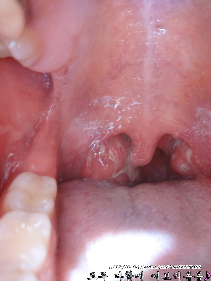 보통은 쌀알 정도 1~2mm 정도 크기의 알갱이가 나오지만 더 클 경우 직접 육안으로도 편도선에 흰 알갱이가 박힌 것을 확인할 수 있습니다.