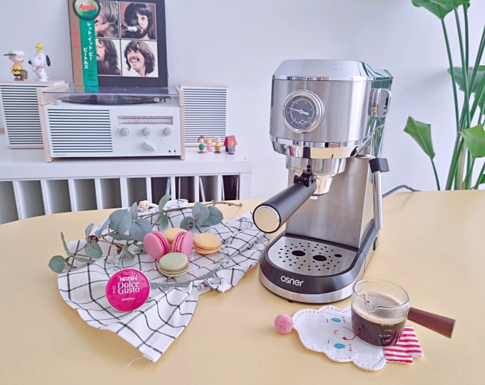 そして最大のメリットといえば、粉砕コーヒーだけでなくカプセルコーヒーも抽出できるという点ではないかと思います!カプセルもドルチェグスト、ネスプレッソの2種類とも互換性があるので、さらにお得な気がしてエスプレッソの半自動コーヒーマシンがおすすめです!ですから、様々なユーザーの好みに合った抽出温度設定ができるので、家庭用半自動コーヒーマシンのおすすめ商品として多くの方に使われているのではないかと思います!また、強力なスチームで様々なコーヒーを楽しむことができます!ラテ、カプチーノ、ラテアートなど、さらにおいしいコーヒーでホームカフェを楽しむことができますよ~^^家庭用 カプセル コーヒーマシン : オスナーカプセル & エスプレッソ 自動セッティング コーヒーマシン smartstore.naver.com高級感のあるフルステンレスの外観が目立つ半自動コーヒーマシンです。モダンなデザインが洗練された感じです。家でプレミアムコーヒーを楽しむことができて本当に満足できる製品です。コーヒーの味を決める最も重要なことの一つが抽出圧力です。 不均一な抽出圧力は、コーヒーの味のクオリティを低下させます。ですから、家庭用半自動コーヒーマシンを選ぶ時も重要だと思います。カフェが羨ましくない自分だけのホームカフェを楽しんでいる今日この頃です。~^^家にコーヒーマシンがありますが、作業室にも新しく一つ入れることになりました。1ショットフィルター&2ショットフィルターオスナー·イルガディラスは20BARで安定的な抽出が可能です!豊かなクレマを感じることができます。 なのでボディ感も豊富です。そして直感的なワンタッチの簡単な方法で誰でも簡単に作動しやすいです。まずは予熱が早くなるので、エスプレッソの抽出もすぐできるので楽でした。オーナーの例がデラックスならではのメリット!★サーマルブロックヒーティングシステム-3倍速い予熱★圧力ゲージ-直観的な確認★2つの水温度設定-好みに合わせた抽出★メモリー機能-スマートな使用★多様なカプセル互換-小さなカプセル&大きなカプセル★シングルボイラー搭載-安定した温度と水供給3in1 ポーターフィルターとネスプレッソカプセルフィルターある日は便利にカプセルコーヒーが飲みたいし、またある日はコーヒー豆で深みのあるコーヒーが飲みたいですよね。2つは気分に合わせて選んでコーヒーを抽出して楽しむことができるので万能だと思います!フフフ計量スプーン&テンパードルチェグスト·ポーターフィルター