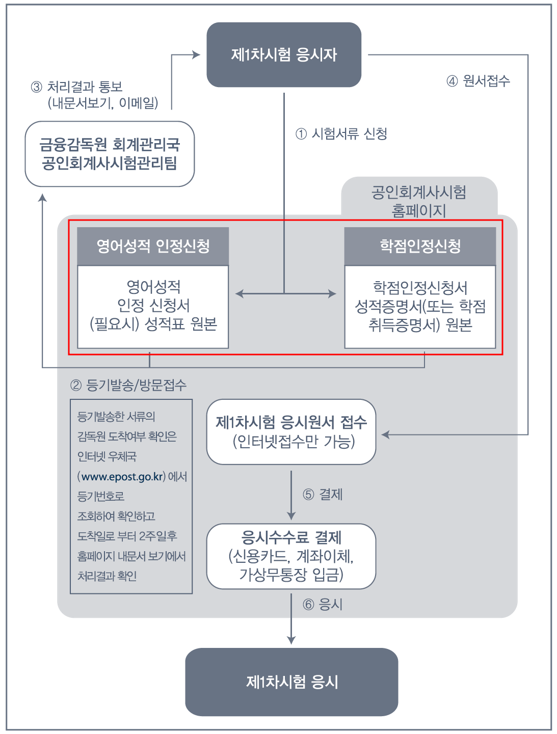 4. 회계사 원서접수_절차회계사 원서접수 절차를 간단히 정리하여 말씀드리겠습니다.회계사 원서접수 전 응시요건 충족 > 회계사 원서접수기간에 원서접수 선택 후 이름, 응시자격서류, 연락처 등 입력기재 > 모든내용 확인 > 결제 > 접수확인 및 수험표 출력