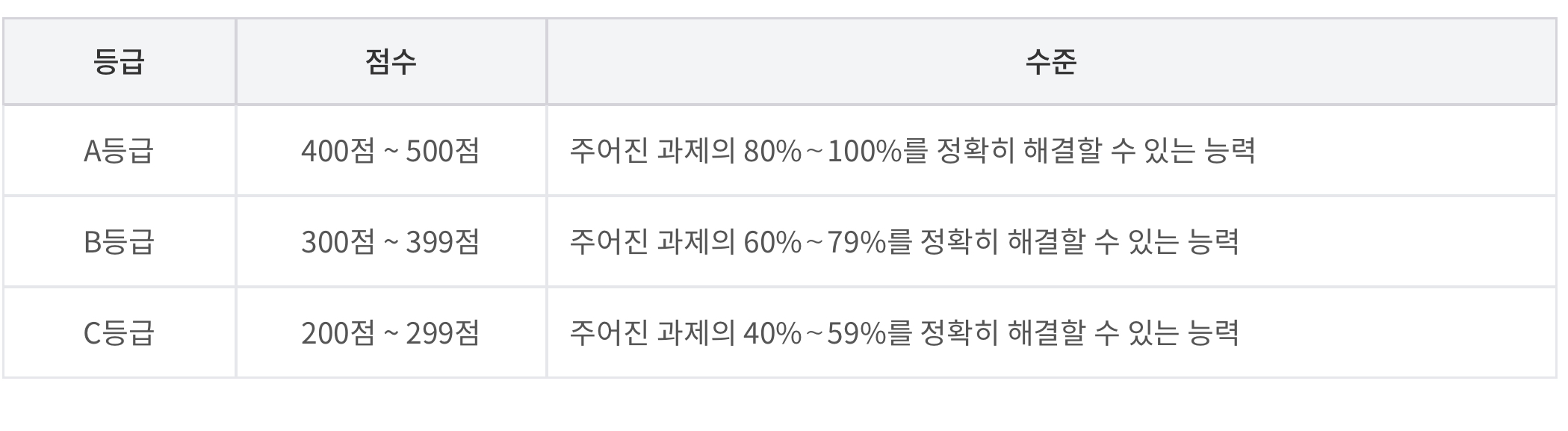 ITQ 자격증 등급 합격 기준은 이미지를 보시면 아시겠지만 점수에 따라 등급이 분배됩니다.그렇다고 불합격이 없는 것은 아닙니다.500점 만점에 200점 미만은 불합격이니 주의하세요.또한, 만약 B등급을 받아서 A등급으로 올리고 싶다면 다시 한번 응시해서 A등급에 맞는 점수를 받아서 등급 업그레이드를 시킬 수 있어서 좋다고 생각합니다.