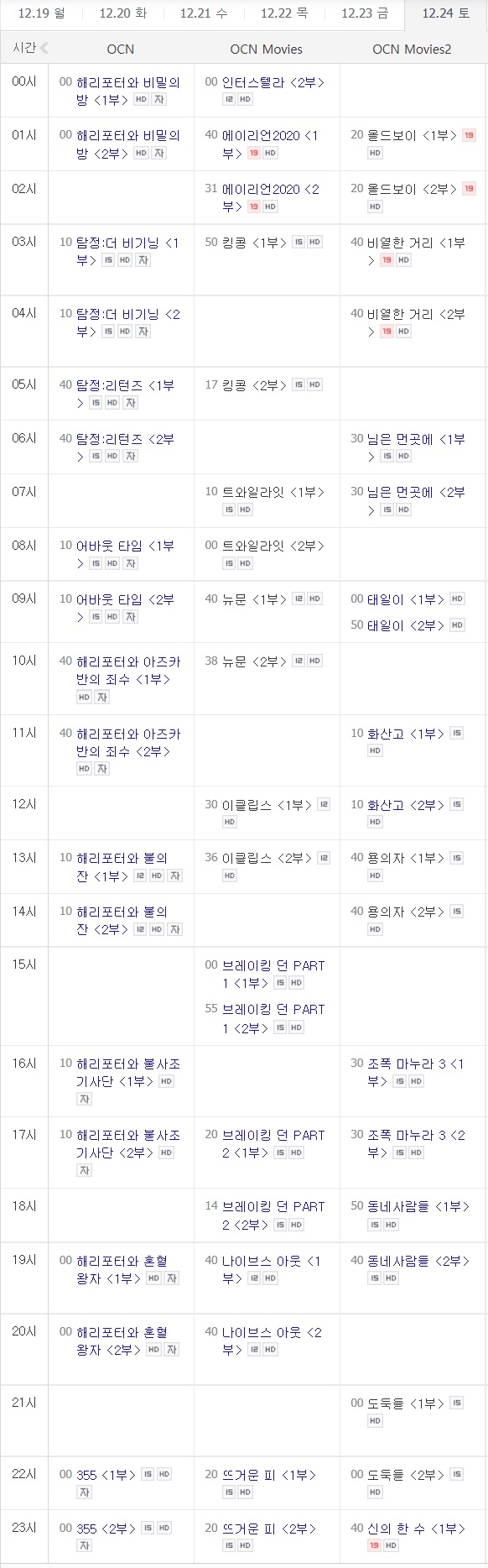먼저 12월 24일 크리스마스 이브 오후 OCN 편성표를 보면 <해리포터와 혼혈왕자>와 항상 12월이면 극장가에서도 재개봉되고 TV에서도 볼 수 있는 <러브 액츄얼리>가 방송됩니다.
