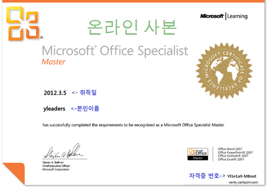 MOS(Microsoft Office Specialist)는 MS 오피스 프로그램(엑셀/워드/파워포인트/액세스)에 대한 자격으로, Microsoft Office Specialist는 Microsoft에서 인정하는 국제인증자격시험입니다.
